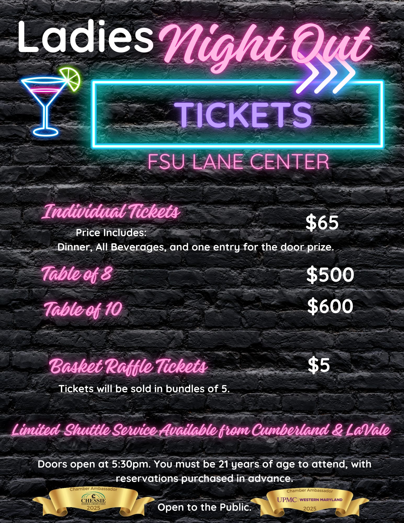 Join us for an unforgettable evening at the Allegany County Chamber of Commerce’s annual Ladies Night Out! This event is all about fun, food, drinks, and great company, so grab your friends and get ready to have a blast.